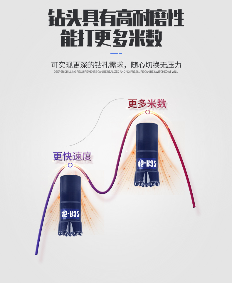 更多顶锤式螺纹钻头相关信息欢迎来电垂询联系人:刘经理手机:18673432155我们将用心做好每支钻头、尽心解决每个问题、全新服务每位客户,力求完美!钻头米数打的多,请选米数多!
