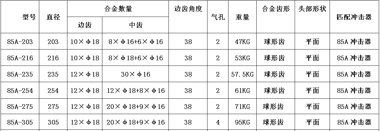 采用高耐磨硬质合金球齿和高韧性合金钢裤体。